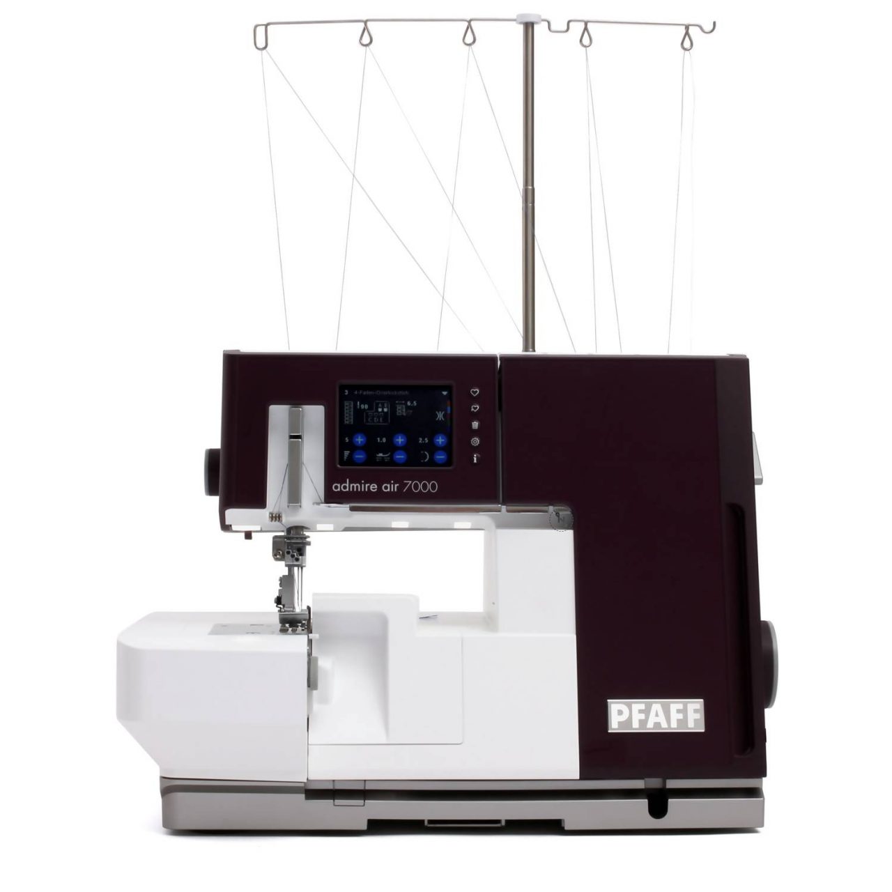 Pfaff admire air 7000 Coverlock und Overlock kombi mit bis zu 5 Fäden, 26 Stichen, 3 Coverstichen, Differentialtransport, Greifereinfädelung per Knopfdruck, automatische Fadenspannung, Freiarm und Normalzubehör!